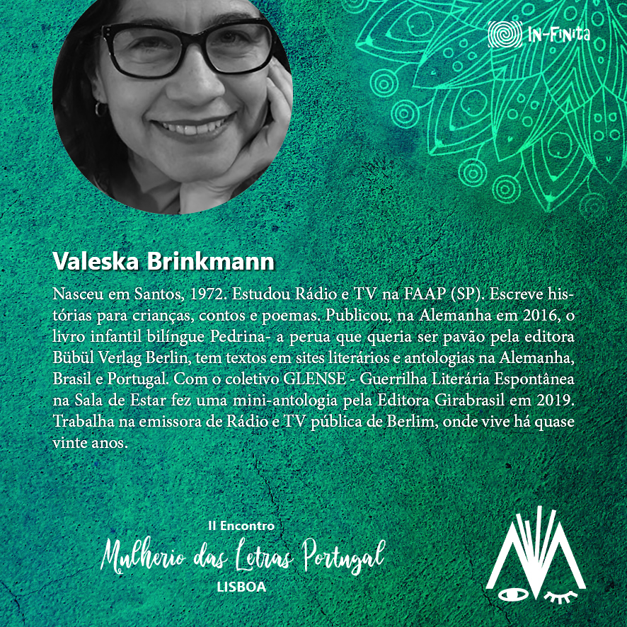 Durante Quatro dias, mais de 250 Mulheres envolvidas no universo da escrita, que contribuem para o fortalecimento da literatura e cultura em língua portuguesa de Portugal, Brasil, Bélgica, Alemanha, Cabo Verde, Angola, França, Espanha, Itália, Estados Unidos, Luxemburgo, Suíça, Londres, Irlanda, Dinamarca, Croácia, entre outros países, estarão conectadas. Acompanhe-nos!